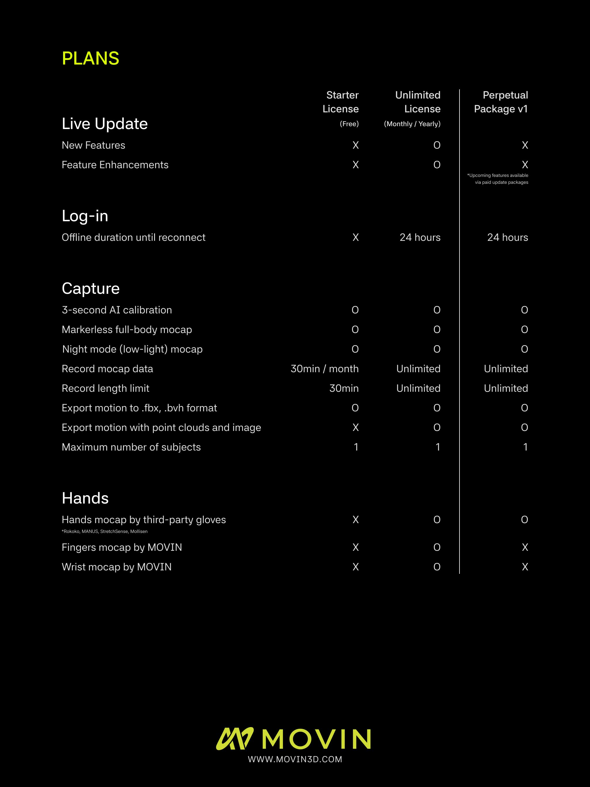 MOVIN Studio, License Plan